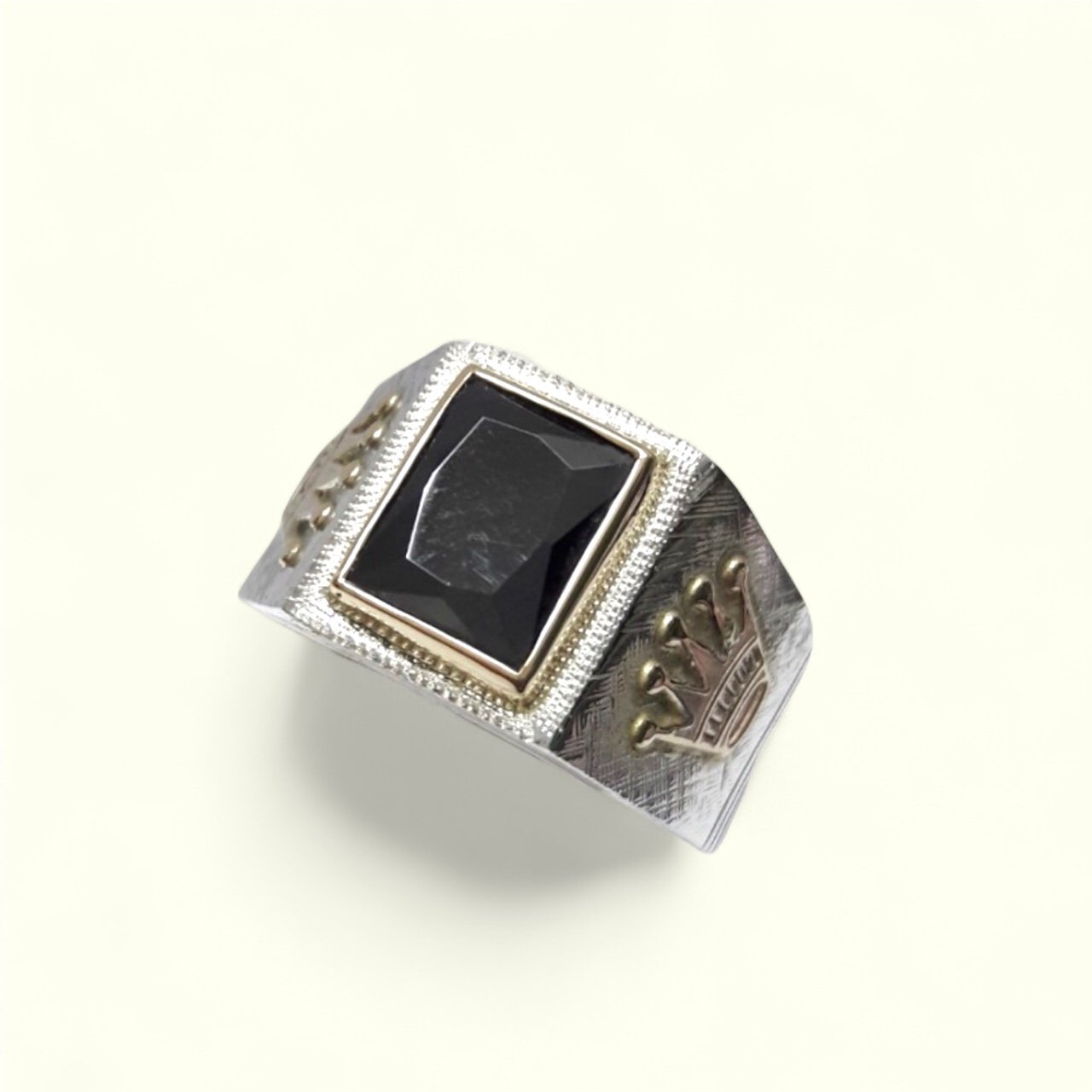 Este anillo en plata 925 con detalles en oro combina la elegancia atemporal con un toque de distinción moderna. Su piedra negra facetada, de acabado brillante y profundo, se convierte en el centro de todas las miradas, aportando misterio y sofisticación. El engaste cuadrado realza la simetría y el equilibrio del diseño, mientras que los delicados relieves en los laterales añaden textura y carácter. Ideal para quienes buscan una joya única, que refleje estilo propio y se adapte tanto a ocasiones especiales como al uso diario. Un accesorio que transmite fuerza, elegancia y personalidad en cada detalle.