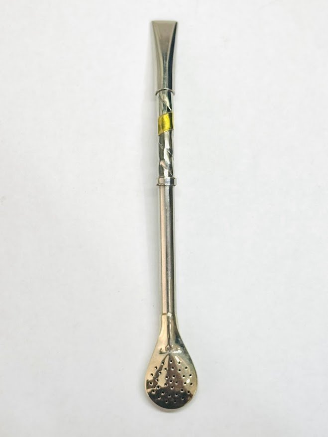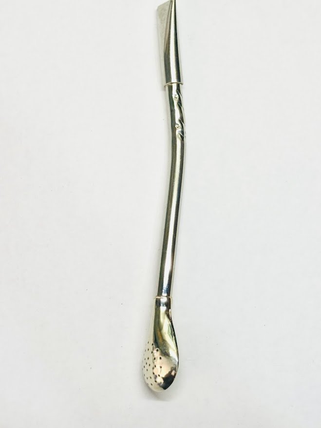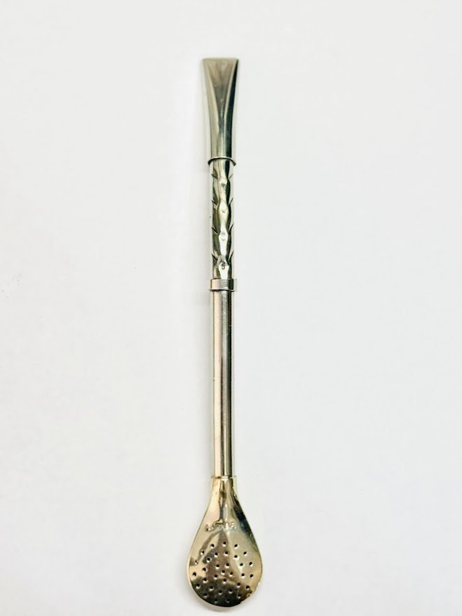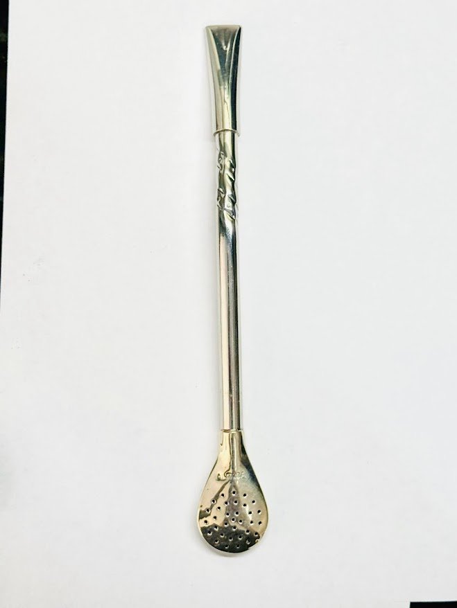 Esta Bombilla Artesanal de Alpaca Cincelada combina elegancia, tradición y resistencia en una pieza hecha para durar. Su cuerpo presenta detalles cincelados que le dan un acabado artesanal único, realzando el brillo natural de la alpaca.