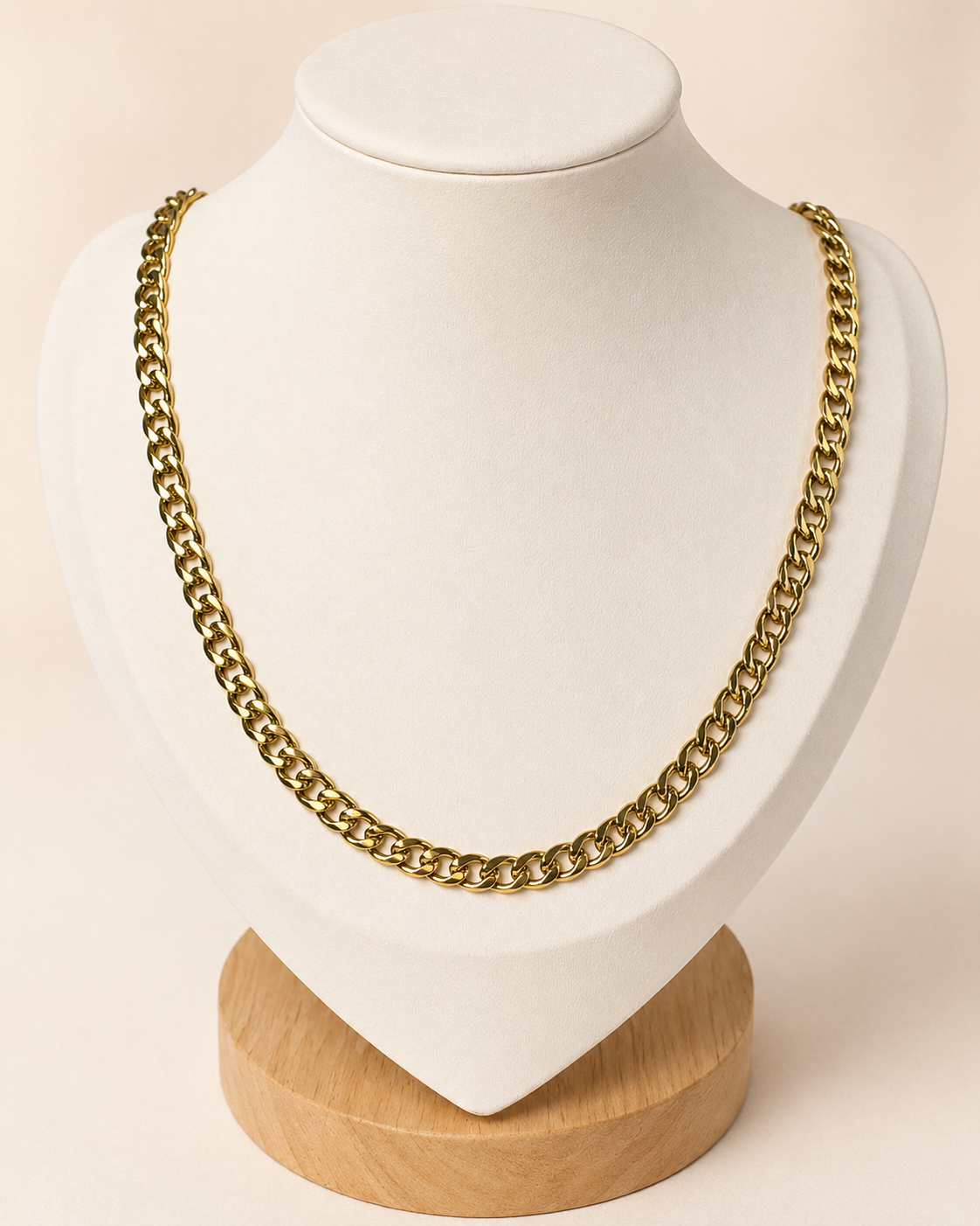 La Cadena Dorada Cubana es una pieza de estilo clásico y moderno a la vez, pensada para quienes buscan un accesorio con presencia, brillo y versatilidad. Su diseño tipo cubana destaca por sus eslabones marcados y uniformes, que aportan un acabado elegante y una imagen fuerte sin perder sofisticación.