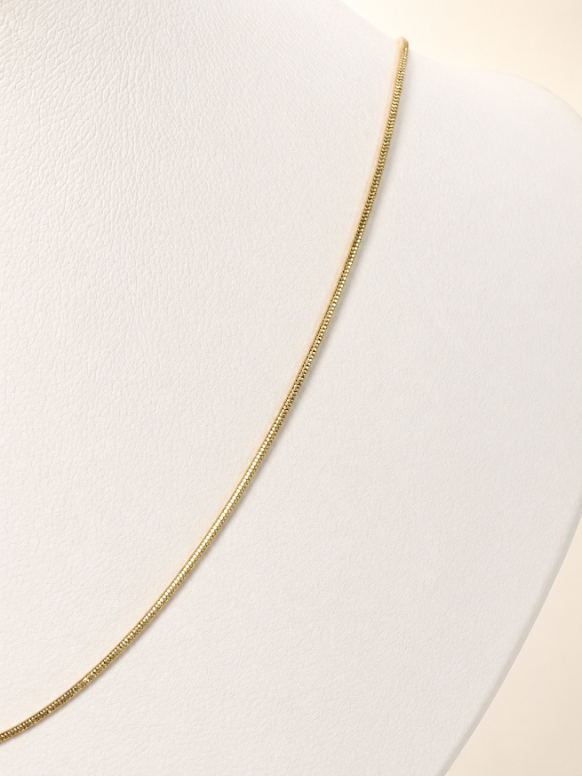 La Cadena Dorada Serena Fina es una joya sutil y elegante, pensada para quienes buscan un accesorio delicado, cómodo y fácil de combinar. Su diseño fino y liviano realza el cuello con un detalle discreto y sofisticado, ideal para lucir todos los días.