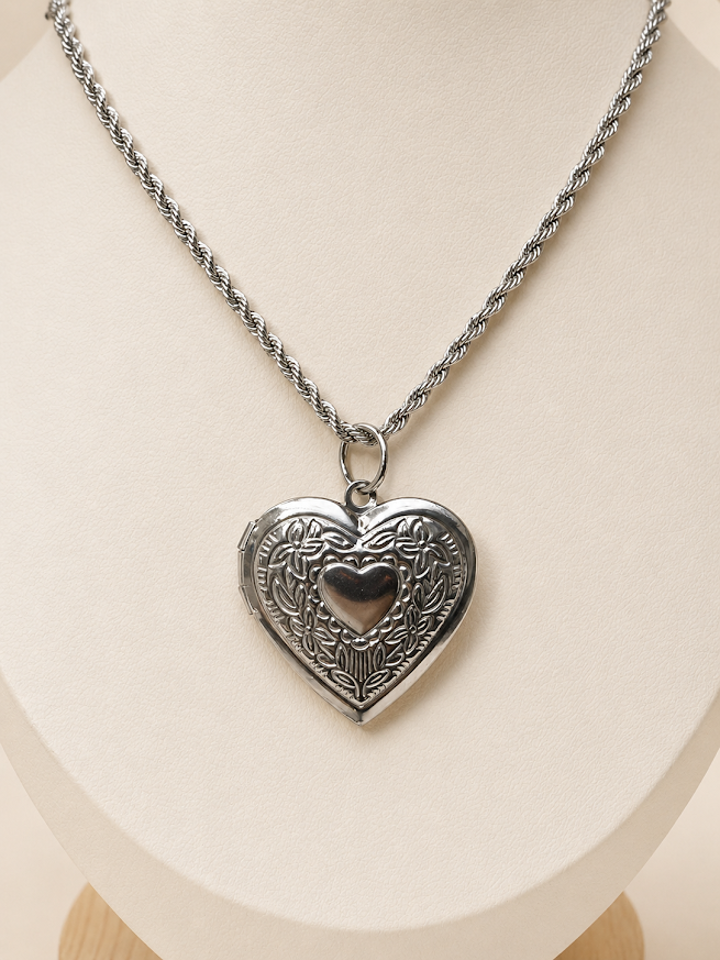 Esta cadena en acero quirúrgico con dije relicario corazón es mucho más que un accesorio: es una pieza pensada para guardar emociones, recuerdos y personas importantes. Su diseño en forma de corazón transmite calidez, afecto y cercanía, mientras que el formato relicario le suma un valor íntimo y personal que la vuelve única.