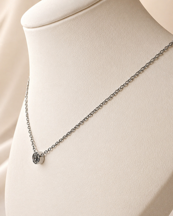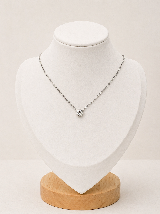 Esta cadena de acero quirúrgico con punto de luz es una joya simple, elegante y fácil de combinar. Su diseño delicado resalta un pequeño detalle brillante en el centro, ideal para quienes buscan un accesorio fino, femenino y atemporal.