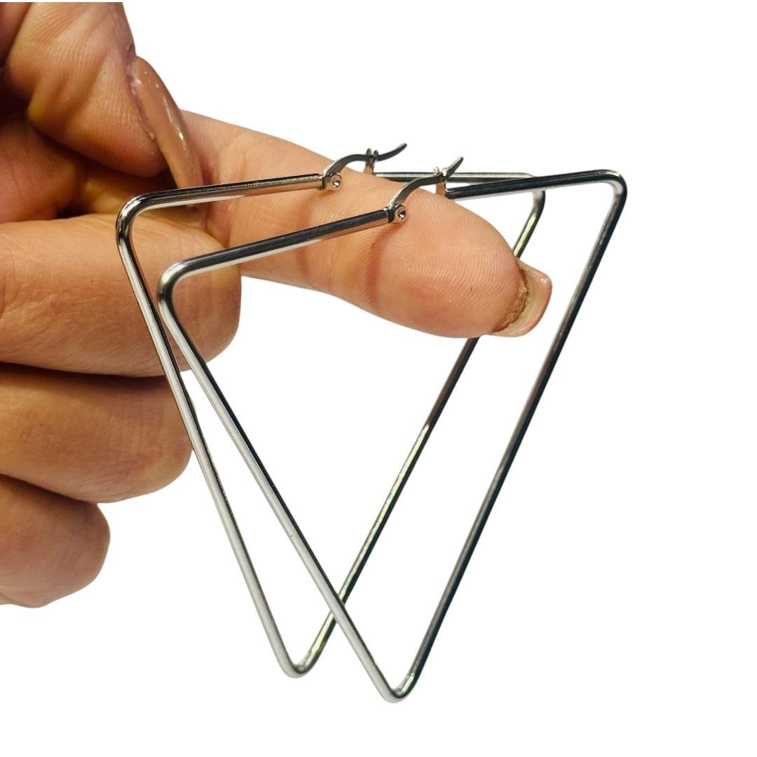 Aros triangulares de acero quirúrgico, modernos, livianos y elegantes, perfectos para realzar cualquier look.
