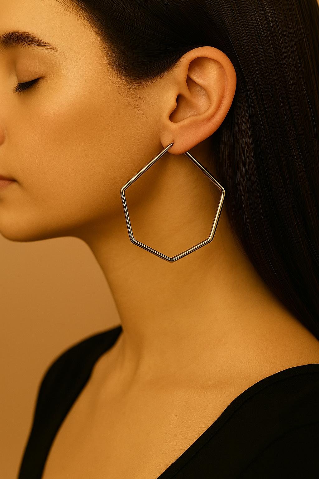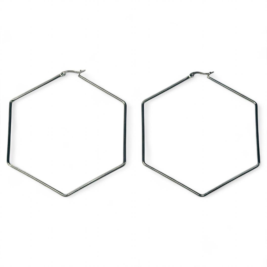 Iluminá tu estilo con estos aros hexagonales en acero quirúrgico. Su diseño moderno y minimalista en forma de estrella los convierte en el accesorio perfecto para darle un toque original y elegante a cualquier look.