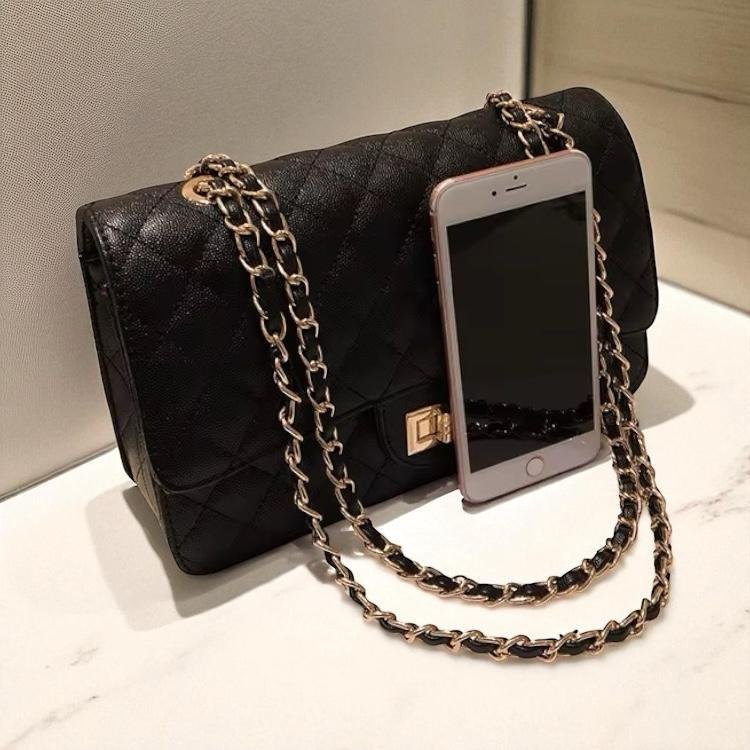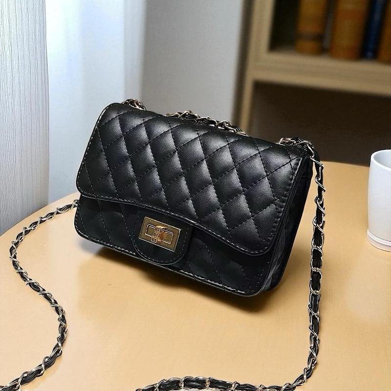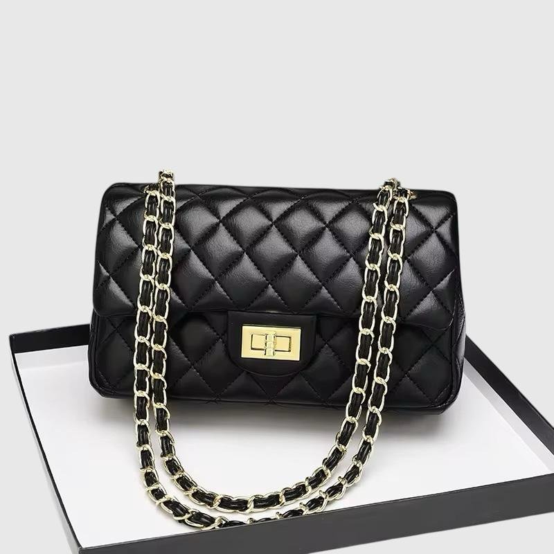 La Cartera Glam es ese accesorio que transforma cualquier conjunto. Con diseño matelassé en rombos, cadena entrelazada dorada y negra, y cierre metálico al frente, combina lo clásico con lo moderno en una sola pieza. Su tamaño práctico permite llevar lo esencial sin perder estilo, mientras que la cadena doble te da la opción de usarla al hombro o cruzada. Perfecta para salir a bailar, una cena especial o darle un toque chic a un look más casual. Elegante, versátil y con mucha onda, es la cartera que te va a acompañar en todas tus salidas.
