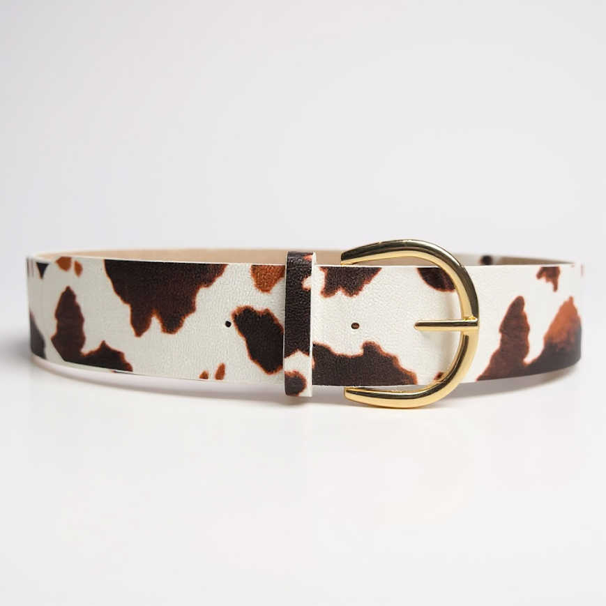 Dale personalidad a tus looks con este cinto animal print tipo vaquita en sus 3 colores. Su diseño ancho marca la cintura de forma súper favorecedora, mientras que la hebilla metálica dorada suma un toque chic que combina perfecto con prendas básicas.