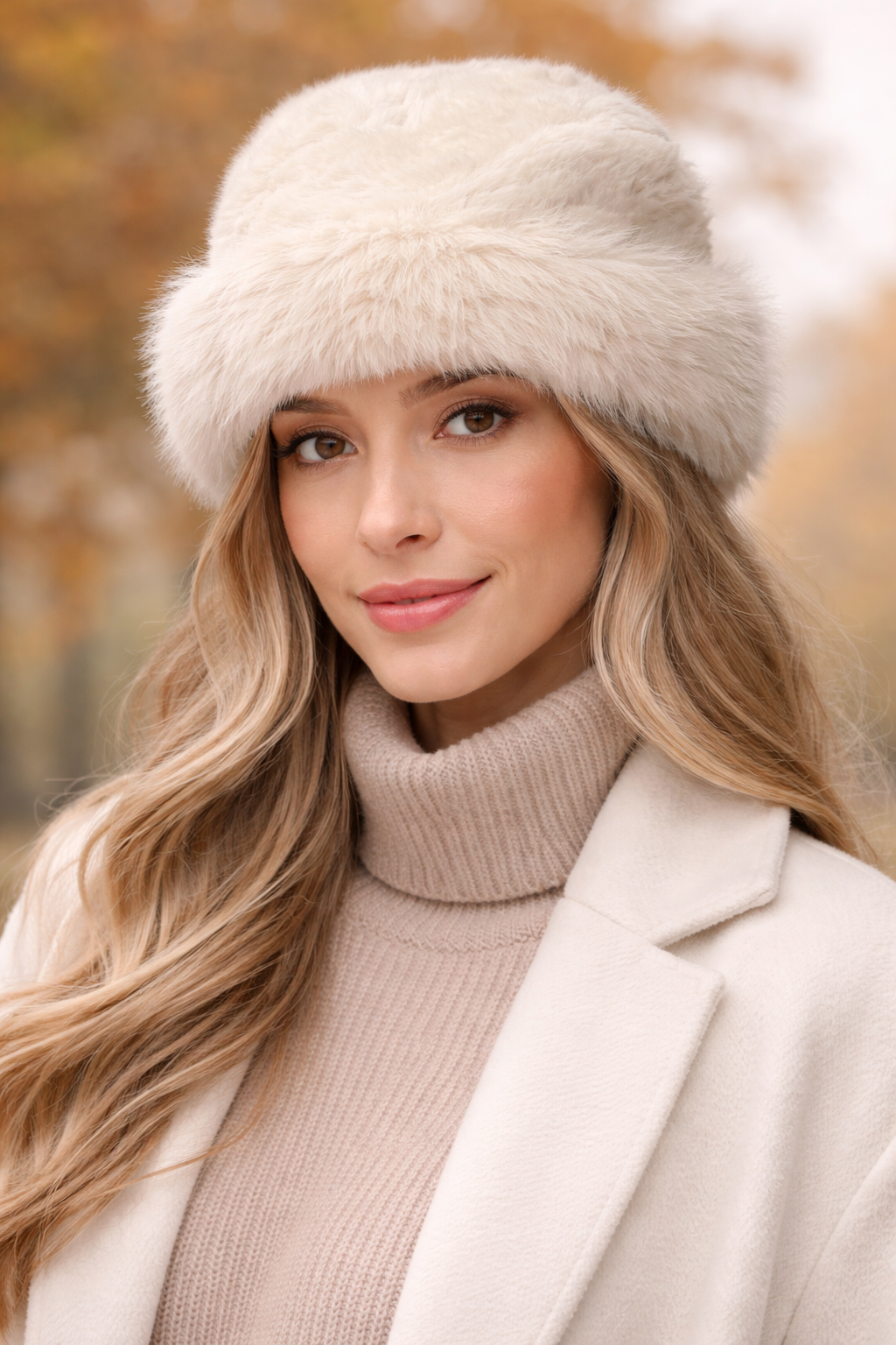 El Gorro Luxe con su diseño inspirado en el estilo ruso combina una silueta envolvente con una textura de piel sintética extra suave, brindando una sensación de abrigo y confort superior.