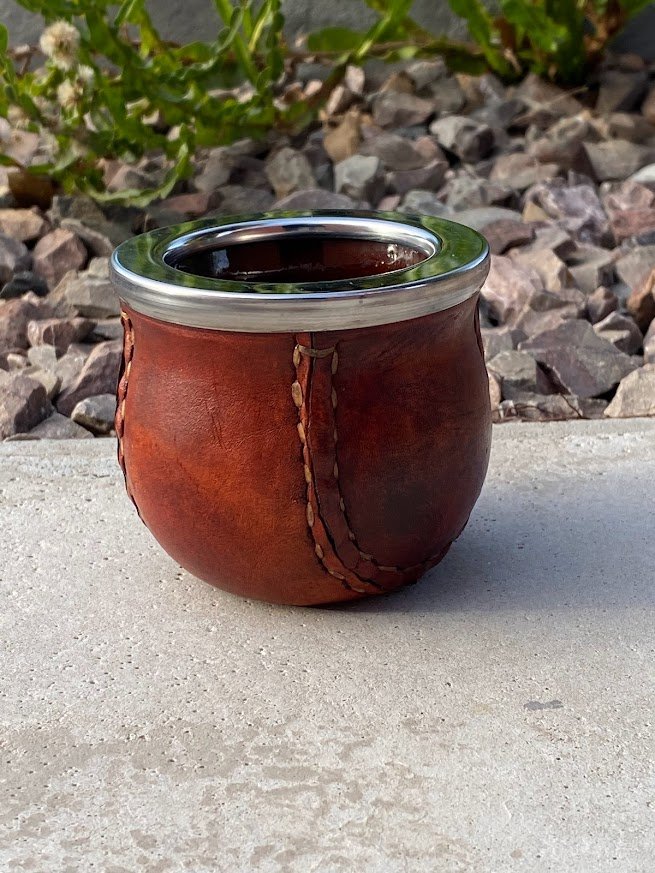 El cuero cosido a mano no solo realza su estética, sino que también brinda un agarre cómodo y seguro. Es un mate ideal tanto para el uso diario como para regalar, perfecto para quienes valoran los detalles y la calidad en cada cebada.