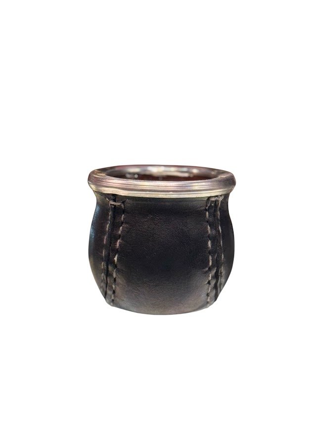 Este mate de cerámica forrado en cuero combina tradición y diseño en una pieza única. Su interior de cerámica conserva mejor la temperatura y el sabor de la yerba, mientras que el forrado en cuero aporta aislamiento térmico, durabilidad y un look sofisticado.