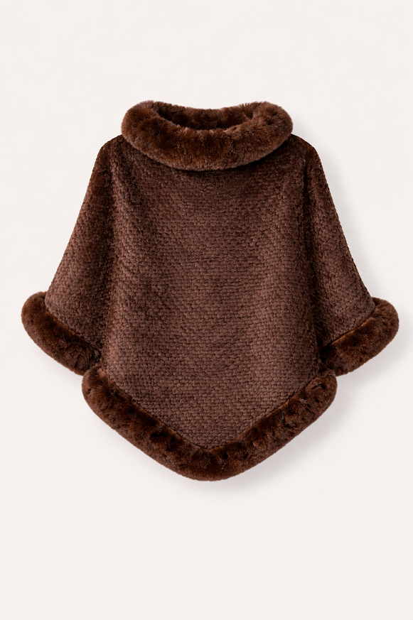 Se destaca por su cuello envolvente y sus delicadas terminaciones en piel sintética, detalles que le aportan un aire elegante y femenino. Es una opción versátil para usar tanto de día como de noche, ya sea en salidas, reuniones o para complementar un outfit más arreglado en otoño e invierno.