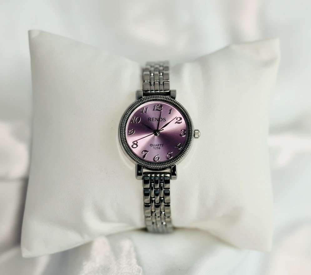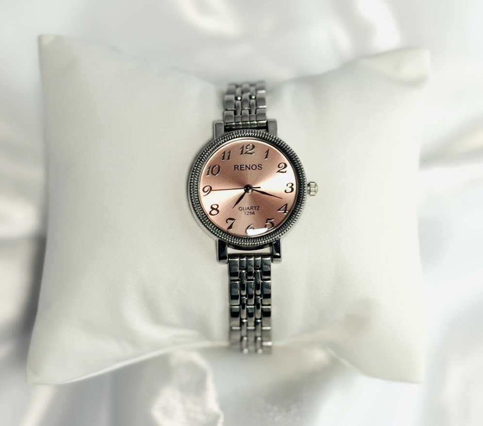 Reloj pulsera, malla metálica cómoda para usar todo el día. Los números son grandes y fáciles de leer, con marco texturado que le da un toque distinto. Va perfecto con jeans, oficina o salida de noche. Si buscás un reloj lindo, práctico y combinable, este es.