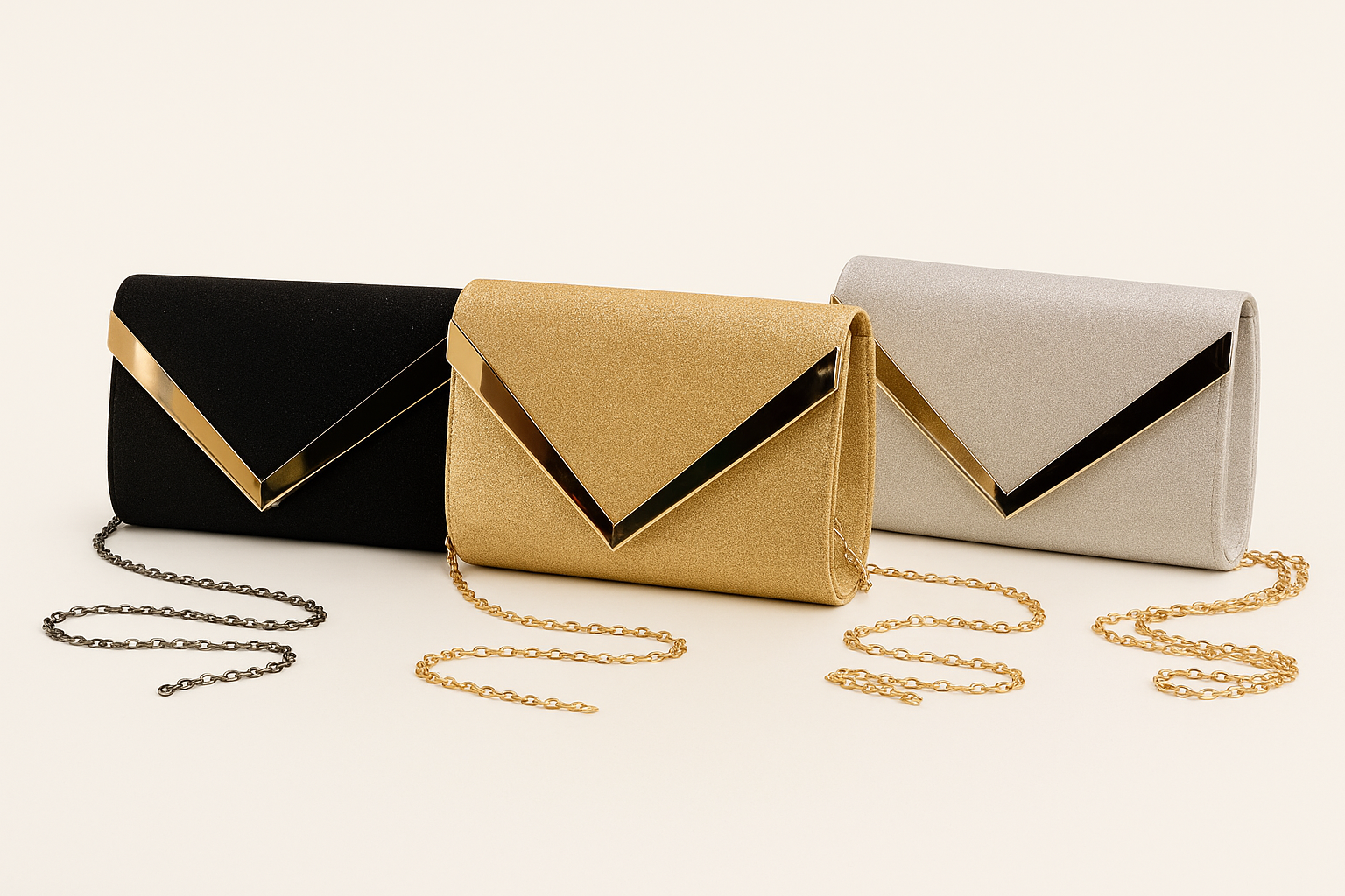 El Sobre Gala Luxe es el complemento ideal para tus noches especiales. Su diseño rígido y elegante con terminación brillante resalta cualquier look, mientras que el detalle metálico en forma de “V” aporta un toque sofisticado y moderno.