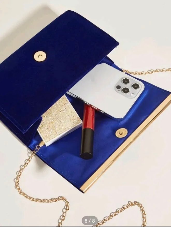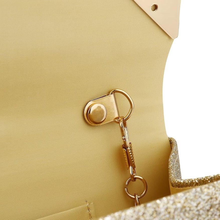 Incluye cadena metálica desmontable, permitiéndote usarlo como clutch en la mano o colgado al hombro. Su interior es práctico y cuenta con el espacio ideal para llevar tus esenciales: celular, llaves, tarjetas, labial y más.