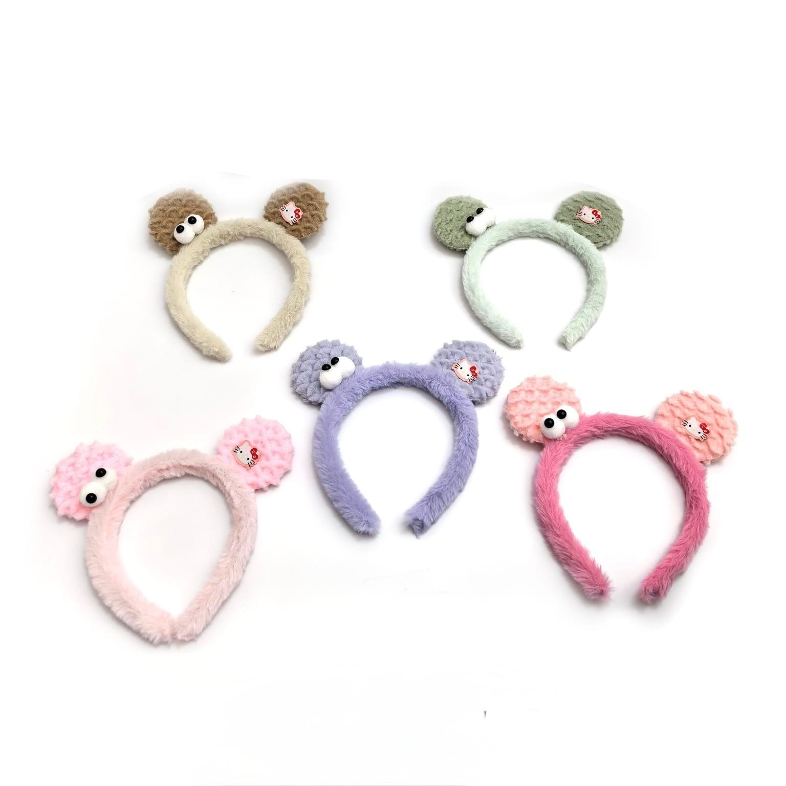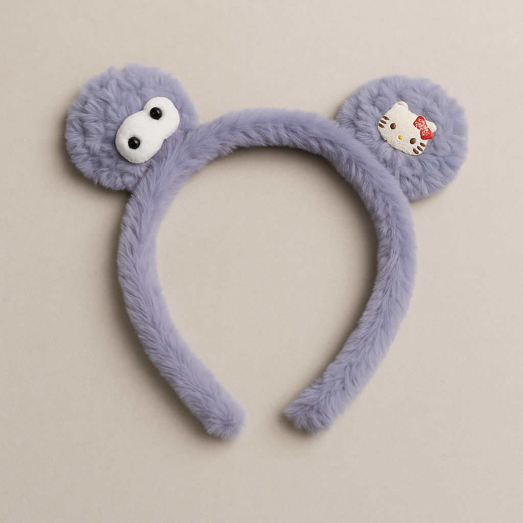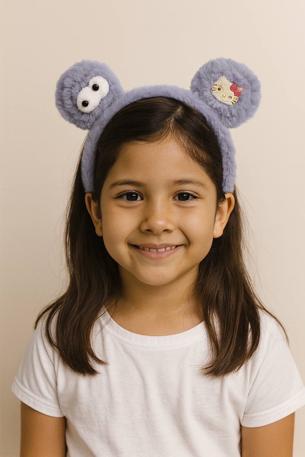 Tiara peluche con orejitas decoradas, suave y cómoda, ideal para un look tierno y divertido.